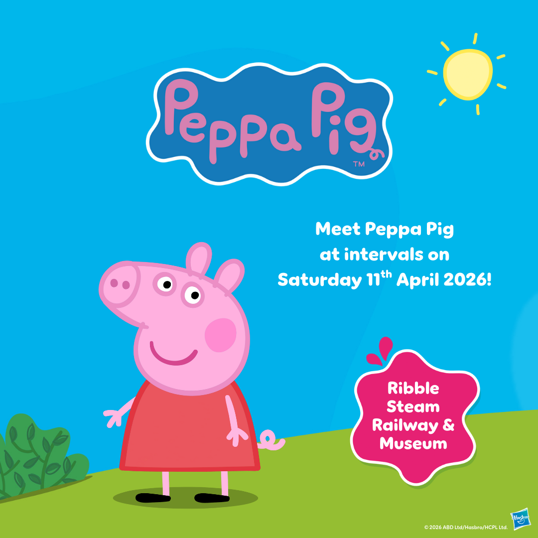 Come and meet Peppa Pig at intervals on April 11th throughout the day at Ribble Steam Railway!